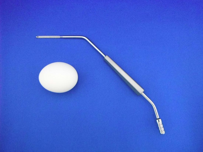A handle piece has enough weight, works as a retractor leaving it at chest cavity, allowing hands-free and giving the operator a better view of surgical area. Proximal end connects to standard ¼” or 6 mm tube.